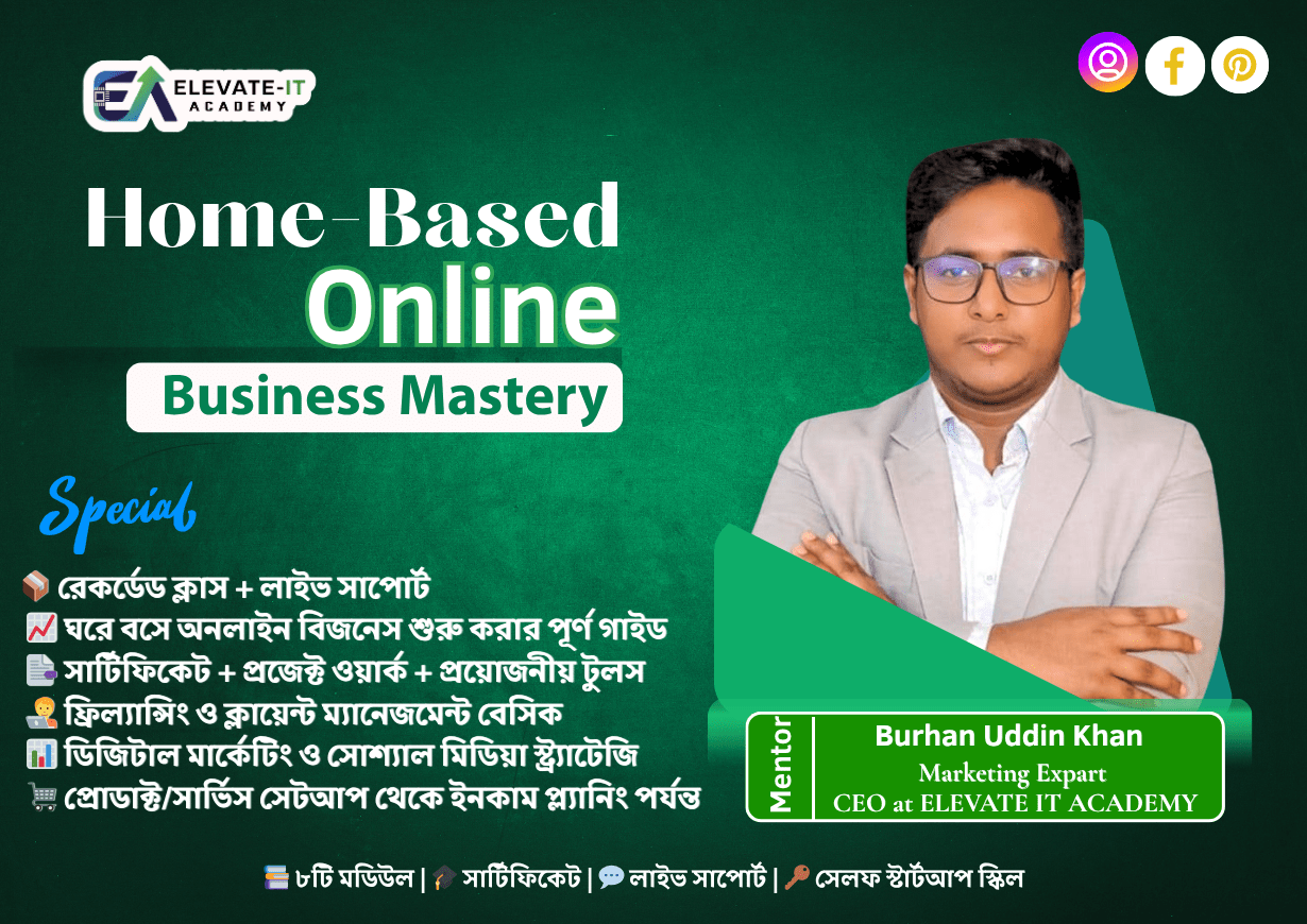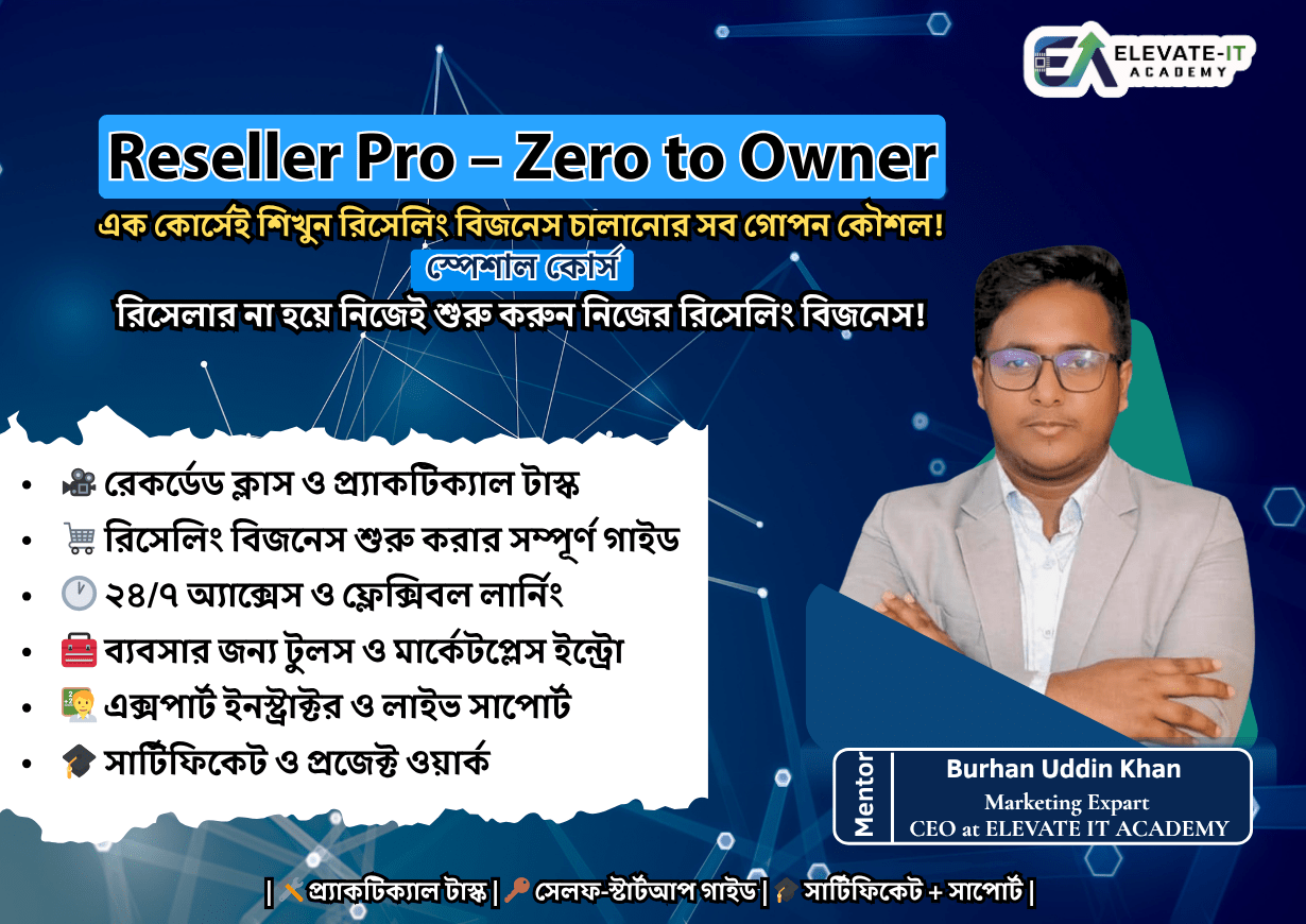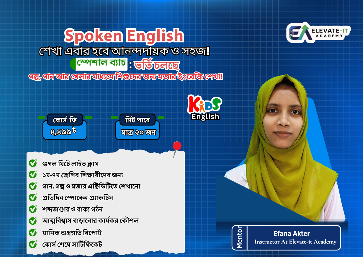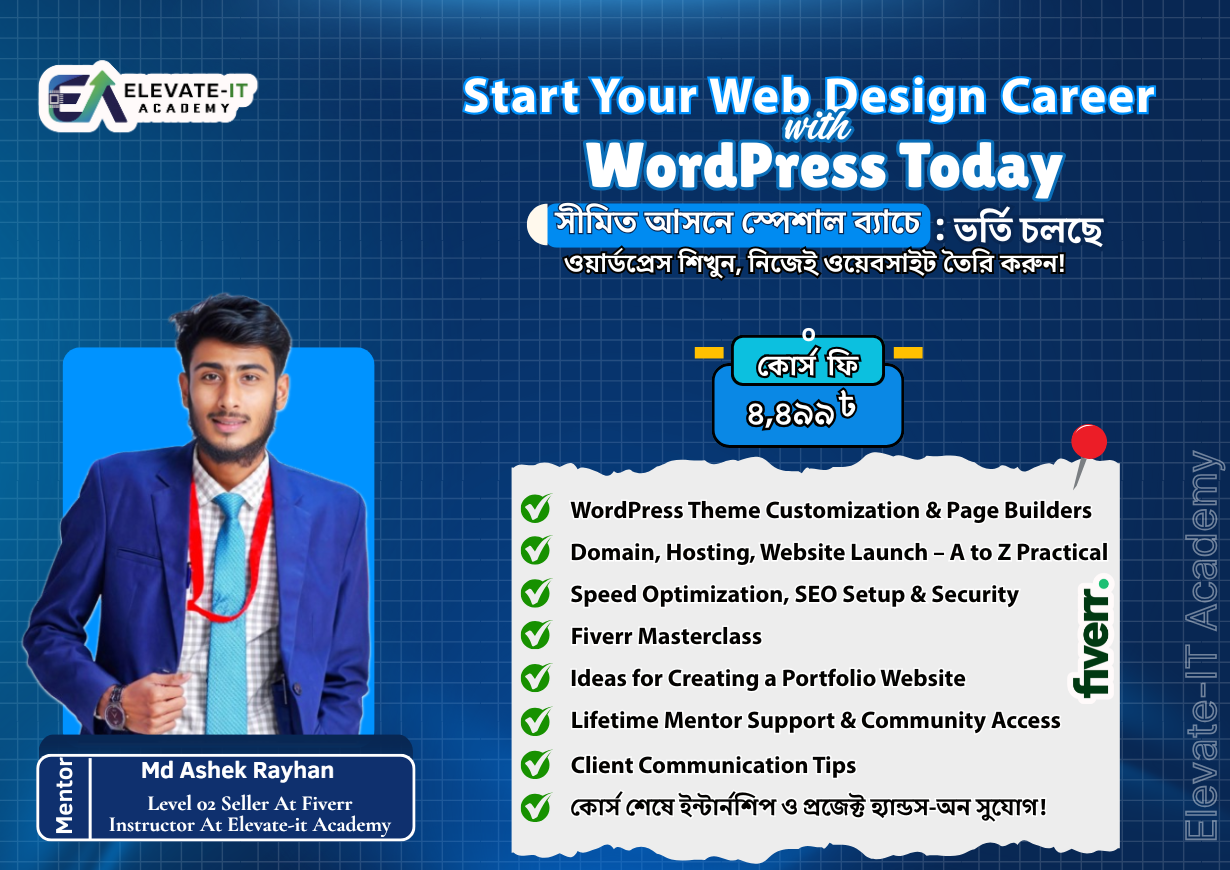 আমরা বিশ্বাস করি, ট্যাকটিক্যাল স্কিলই বদলে দিতে পারে একজন মানুষের ভবিষ্যৎ। Elevate IT Academy একটি আধুনিক ডিজিটাল লার্নিং প্ল্যাটফর্ম, যেখানে শেখানো হয় আন্তর্জাতিক মানের স্কিল । আমাদের অনলাইন ও অফলাইন আপডেটেড, সময়োপযোগী কোর্সগুলো পরিচালনা করেন অভিজ্ঞ মেন্টররা, লাইভ ক্লাস ও ফ্লেক্সিবল শিডিউলের মাধ্যমে। কোর্স শেষে শিক্ষার্থীদের দেওয়া হয় সার্টিফিকেট এবং দীর্ঘমেয়াদী সাপোর্ট, যাতে তারা আত্মবিশ্বাসের সাথে ক্যারিয়ার শুরু করতে পারে।